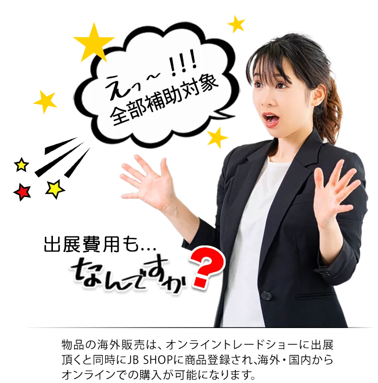 ONLINE 国際見本市に出展いただくと同時に、商品はJB SHOPに自動登録。 海外ユーザーが購入できるようになります(下の図左「PRODUCTS BOOTH」と、JB SHOP商品購入ページに掲載)。