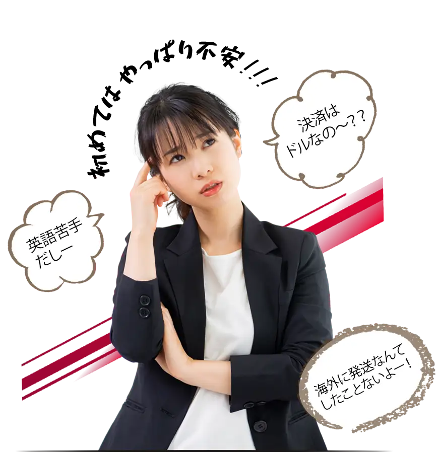 初めての海外販売ともなると誰もが「海外販売が初めてなので心配……」、「海外販売は敷居が高そうなのでどうも……」。 そして、「① 英語が苦手 ! ② 決済が心配 ! ③ 海外発送はどうやるの?」等の心配が先に立ち、ハードルがとても高く感じられて 躊躇してしまうといったショップも、少なくないと思います。